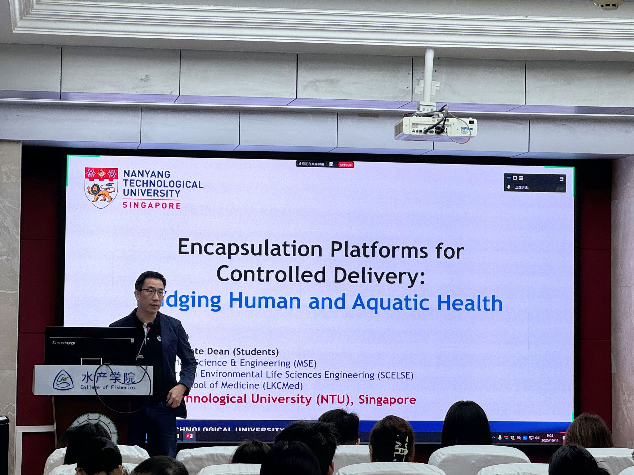 近日,我们2025年第08期(总420期)“水产讲坛”在水产楼A座天辰报告厅举行,特邀Loo Say Chye Joachim教授作专题学术报告,报告题目为“控释包封平台——连接人类健康与水产安全的‘纽带’”。这场报告既饱含学术深度,又贴近产业实际,为在场师生揭开了“包封技术”破解水产养殖难题、推动行业向“高效、绿色、可持续”转型的神秘面纱。