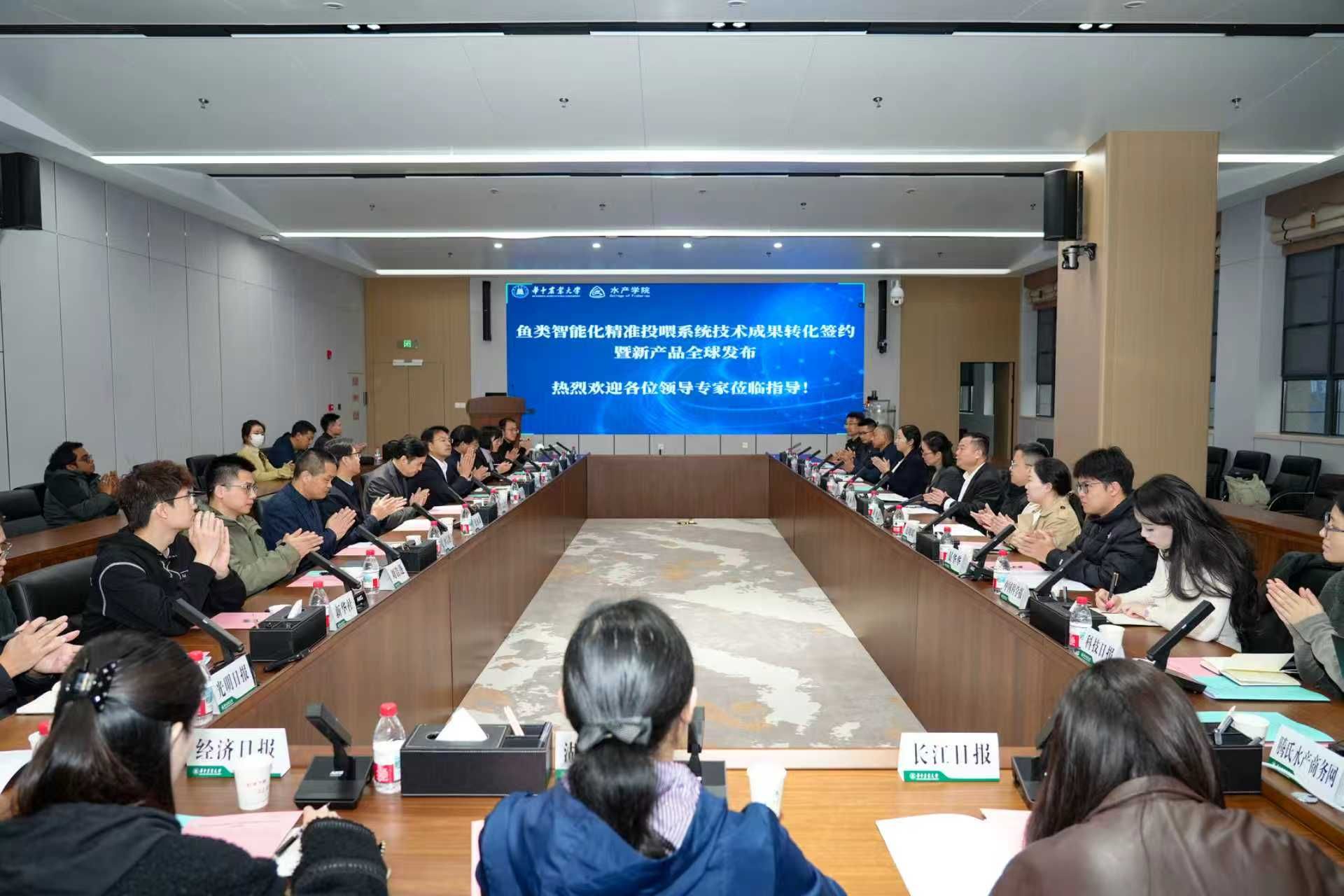 11月10日,“鱼类智能化精准投喂系统技术成果转化签约暨新产品全球发布会”在湖北洪山实验室隆重举行。437437必赢国际网址与深圳盛亚环境技术有限公司正式签署技术成果转化协议,以2000万元达成20年技术独占许可合作,标志着这项技术正式从实验室迈入产业化应用新阶段,为水产养殖高质量发展注入强劲科技动能。