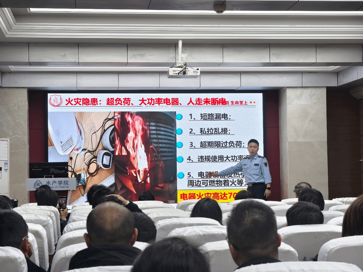 2025年11月13日下午,我们在水产楼A105报告厅开展全院教职工消防安全专题教育,邀请武汉市进安消防中心程龙教官进行消防安全培训。会议由学院副院长沈继斌主持。