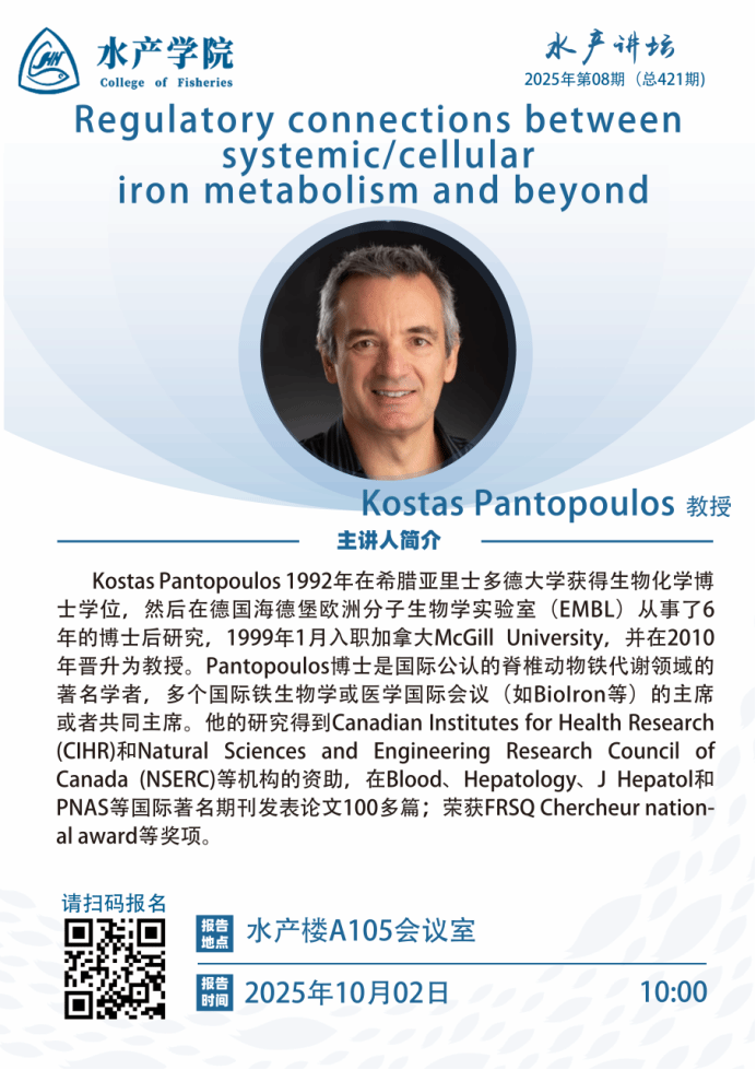 下一篇:【水产讲坛】健康和疾病中的系统性铁代谢:来自小鼠模型的经验