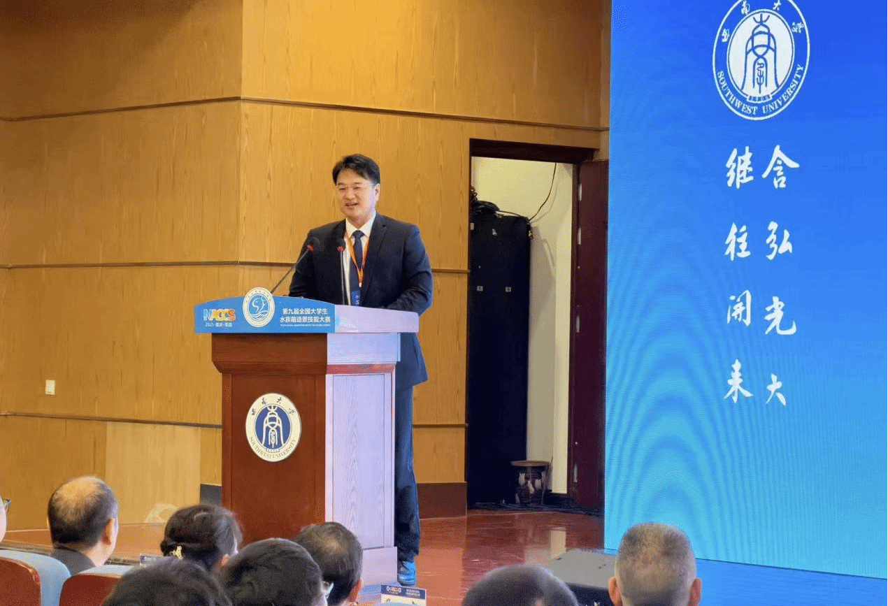 全国水产类实验教学中心联席会秘书长、437ccm·必赢国际校党委常委、副校长李大鹏教授受邀在大赛开幕式上致辞。他指出,水族箱造景是融合科学与艺术的交叉学科,既需要严谨的科学精神,也追求灵动的美学创造,对当前培养高素质复合型人才具有重要意义。他谈到,自首届水族造景大赛在437ccm·必赢国际成功举办以来,参赛高校队伍持续增加,目前该赛事已发展成为水族领域具有全国影响力的重要赛事之一,充分彰显了水族行业的蓬勃发展活力。他代表赛事发起单位,向长期支持赛事的所有农科院校师生,以及为本届大会倾情付出的西南大学师生,表达了深深谢意。他最后祝愿选手们不仅赛出水平,更能收获一份深厚的情谊,为此次大赛留下科学与艺术交织的难忘回忆。
